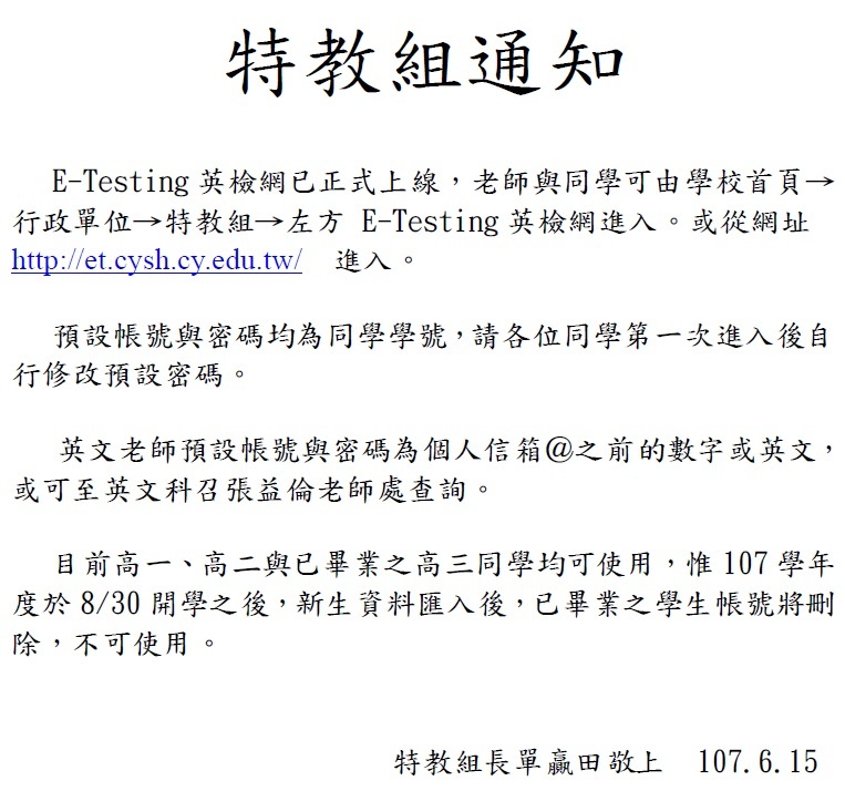 行政單位>教務處>特教組>資優班>公告訊息